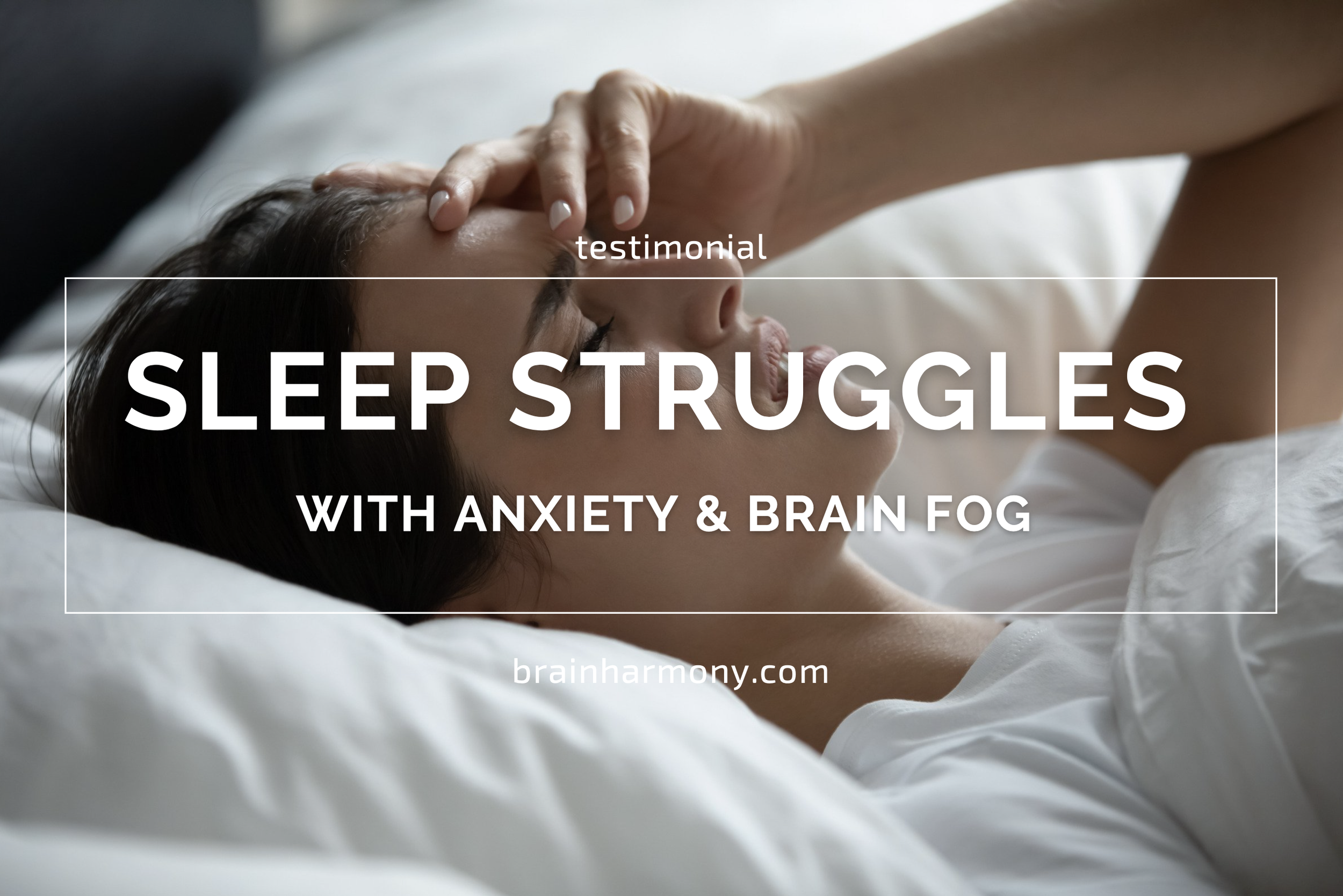 Nancy needed help, and she felt that her meds weren't working, so she sought out another type of treatment and found Brain Harmony. After beginning the program, she noticed right away that her anxiety diminished using the Safe and Sound Protocol and Alpha-Stim. She then gradually felt the depression and brain fog begin to lift. She went from not being able to organize her thoughts to fully functioning at work and in life. Brain Harmony not only helped to heal her anxiety, but it lifted her brain fog, diminished her depression, and improved her sleep.